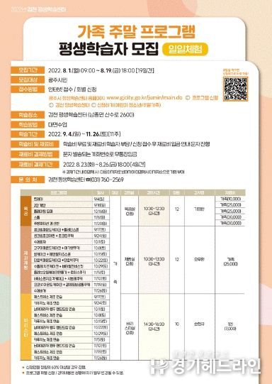 [경기헤드라인=김성구 기자] 광주시는 오는 8월 1일부터 19일까지 ‘2022년 검천 평생학습센터 프로그램 평생학습자 3기’를 모집한다고 26일 밝혔다.