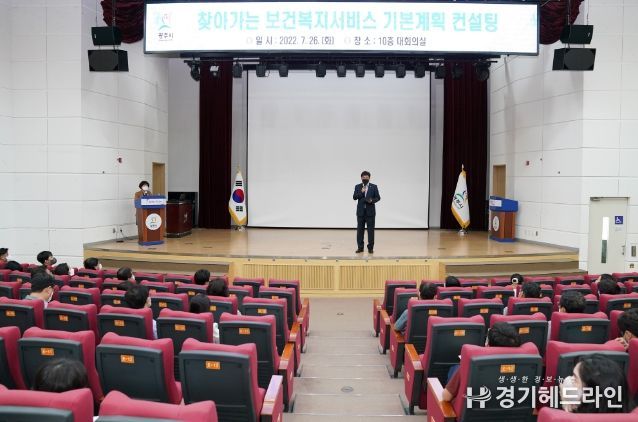 [경기헤드라인=김성구 기자] 광주시는 지난 26일 시청 대회의실에서 방세환 시장, 읍면동장 및 지역사회보장협의체 민간위원장, 위원을 비롯하여 사회복지업무 담당자 및 관련기관 등 100여명이 참석한 가운데 행정안전부 주관 "찾아가는 보건복지서비스 기본계획 심화 컨설팅"을 실시했다.