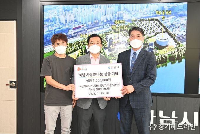 [경기헤드라인=김성구 기자] 하남시배드민턴협회(회장 김정기)는 지난 25일 협회 김정기 회장과 미사강변클럽에서 하남시에 각각 50만원씩 성금 100만원을 기탁했다고 밝혔다.