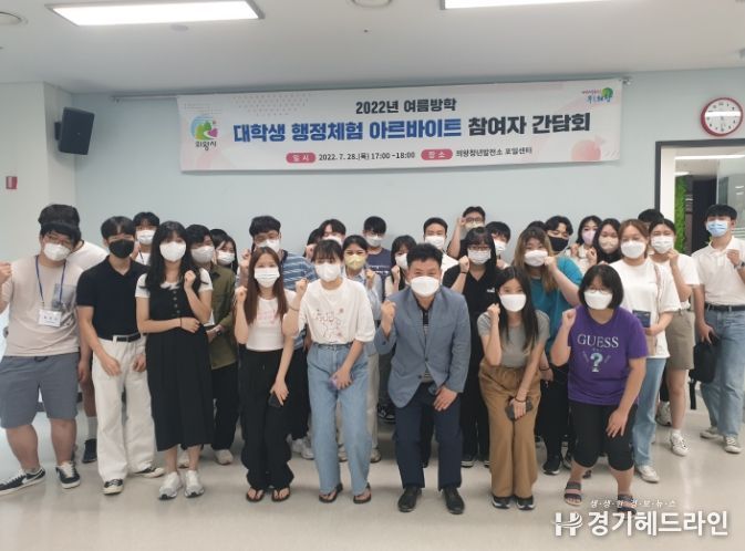 [경기헤드라인=문수철 기자] 의왕시는 28일 의왕청년발전소 포일센터에서 시청 각 현업부서에 배치되어 근무하고 있는 여름방학 대학생 행정체험 아르바이트 참여자 35명과 간담회를 개최했다고 밝혔다.