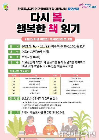 [경기헤드라인=문수철 기자] 의왕시 내손도서관은 9월 독서의 달을 맞아‘시민과 함께하는 독서문화프로그램’운영 계획을 밝혔다.