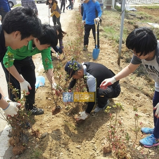 이에 화성시 송산면 천등1리에서 4월 21일(월) 최태열 소장과 직원 30명이 마을주민과 함께 연산홍 꽃나무 600여본을 식재하고 경관정리 봉사활동을 실시했다.