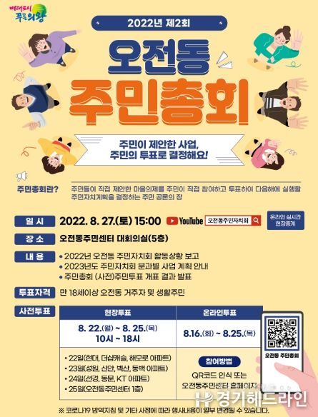 [경기헤드라인=문수철 기자] 의왕시 오전동주민자치회는 2023년도 주민자치사업 추진을 위한 사전투표를 이달 25일까지 진행한다고 밝혔다.