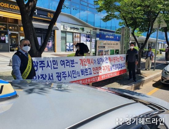 [경기헤드라인=김성구 기자] 광주시 개인택시조합은 지난 16일 이마트, 광주역, 곤지암역 등 택시승강장에서 야간택시 승차난 해소를 위한 야간 운행에 동참할 것을 호소하는 캠페인을 펼쳤다.