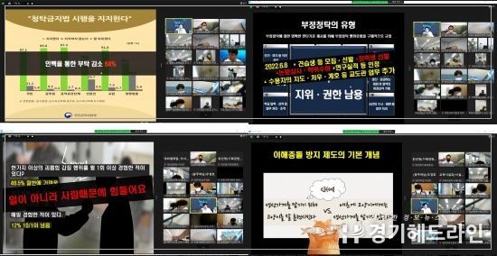 “청렴을 기본으로 더욱 신뢰받는 광주하남교육 구현”을 목표로 추진 중인 다양한 청렴시책의 하나로 기획된 이번 교육은 경기도광주하남교육지원청 및 경기광주교육도서관 전직원을 대상으로 실시간 비대면 연수방식으로 진행됐다.