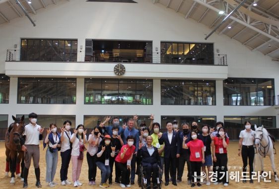 이번 승마체험은 의왕시 관내 장애인과 보호자 21명을 모집해 국제대회 개최가 가능한 국내 최대 규모의 시설에서 기승체험과 말과의 교감활동 시간을 마련했다.