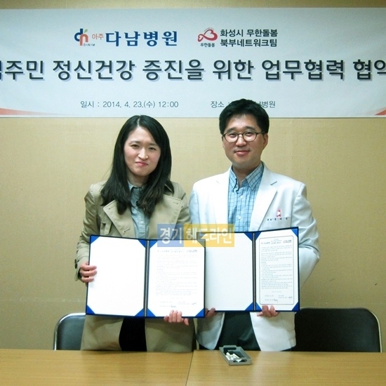 화성시 무한돌봄 북부네트워크팀(이하 북부네트워크팀, 센터장 이정희)과 아주다남병원(원장 김흥모, 원장 문재석)은 23일, 지역사회 내 저소득, 노인, 장애인, 위기청소년 등 위기가구의 정신건강증진을 위한 업무협약을 체결했다.