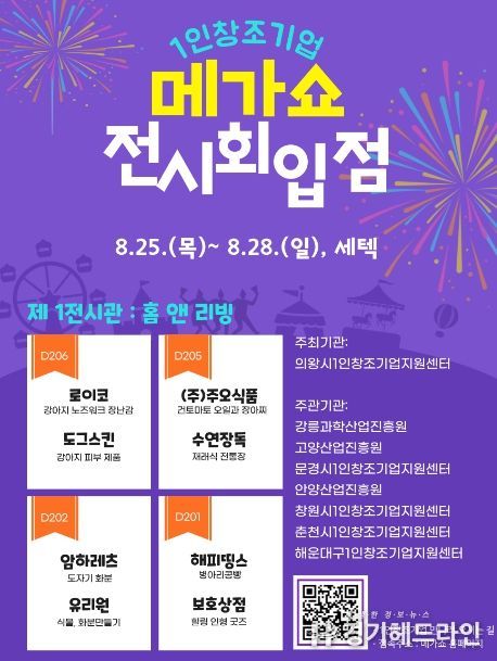 [경기헤드라인=문수철 기자] 의왕시 1인창조기업지원센터는 1인 창조기업의 판로개척과 아이디어상품 판매를 위해 8월 25일부터 28일까지 국내 최대 소비재 전시회인 메가쇼에 참여한다고 밝혔다.