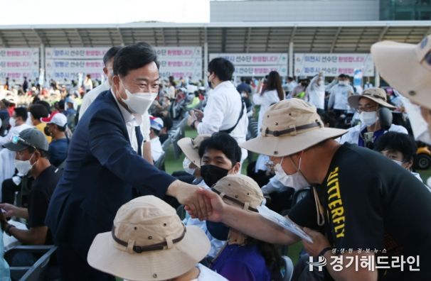 [경기헤드라인=문수철 기자] 김성제 의왕시장은 지난 1일 용인시청 광장에서 열린 ‘제12회 경기도 장애인체육대회 2022 용인’개막식에 참석해 의왕시 선수단과 관계자들을 격려했다.