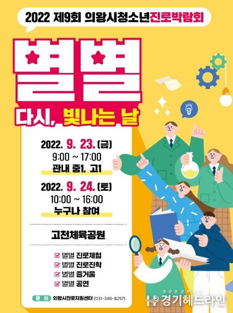 [경기헤드라인=문수철 기자] 의왕시청소년재단 의왕시진로지원센터는 청소년들에게 다양한 진로체험의 기회를 제공하고자 ‘제9회 의왕시청소년진로박람회’를 오는 9월 23일, 24일 이틀 동안 진행한다고 밝혔다.