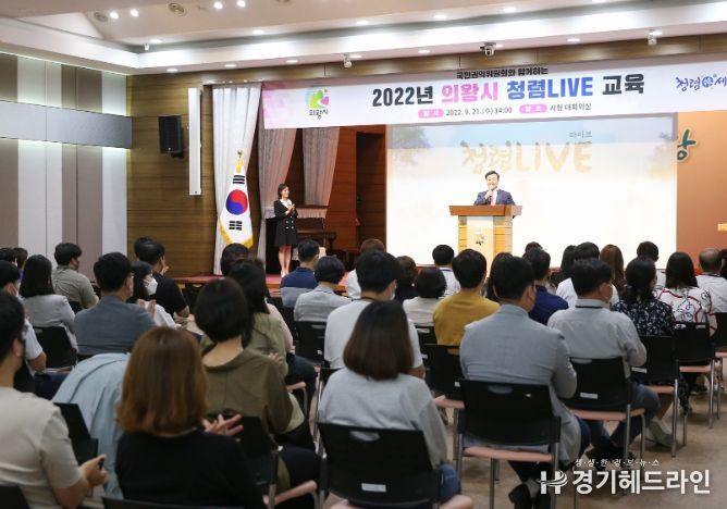 [경기헤드라인=문수철 기자] 의왕시는 지난 21일 시청 대회의실에서 김성제 의왕시장을 비롯해 고위공직자, 승진자 등 100여명을 대상으로 청렴라이브 공연을 실시했다.