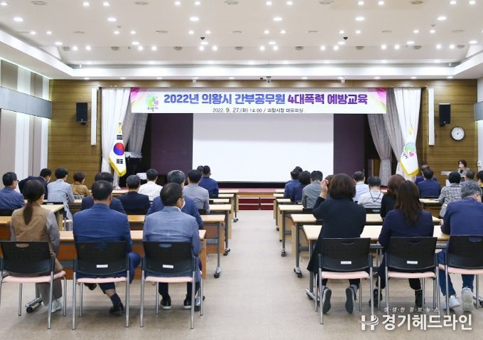 [경기헤드라인=문수철 기자] 의왕시는 27일 시청 대회의실에서 기관장 등 고위직 공무원 50명을 대상으로 4대 폭력 예방교육(성희롱‧성폭력)을 실시했다고 밝혔다.