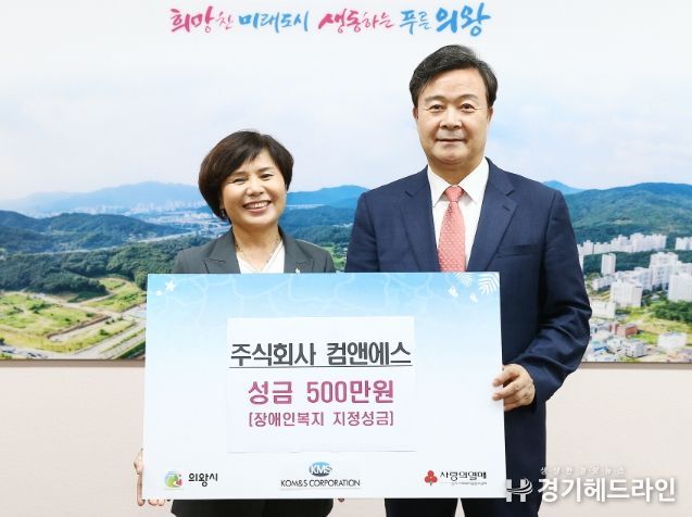 [경기헤드라인=문수철 기자] 의왕시는 29일 ㈜컴앤에스(대표 이우헌)에서 장애인단체 지원을 위한 성금 500만원을 기부했다고 밝혔다.