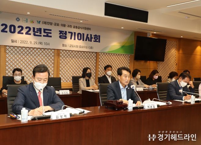 [경기헤드라인=문수철 기자] 하은호 군포시장은 지난 9월 29일 군포시청 중회의실에서 열린 ‘2022년 군포·안양·의왕·과천 공동급식지원센터 정기이사회’를 주관했다.