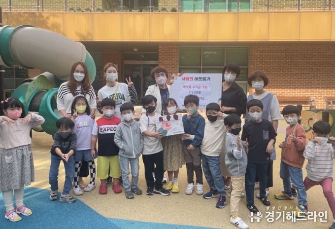 이날 기탁된 성금은 어린이집에서 알뜰 바자회 행사를 열어 학부모와 원생들이 사용하지 않는 의류, 도서, 잡화, 장난감 등 다양한 물품을 판매해 얻은 수익금으로 마련했다