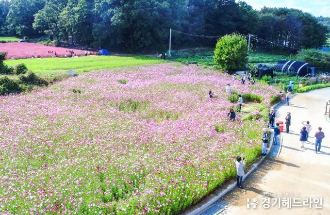 지난 8월 시에서 파종한 코스모스는 10월 초순부터 꽃송이가 하나둘씩 피어나 현재는 절정을 이루고 있어 가을의 진한 향기를 맡으며 농촌경관을 감상하고 즐기는 지역주민과 방문객들의 발길이 이어지고 있다.