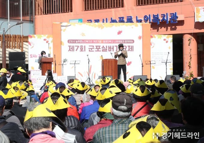 2016년부터 올해 7회를 맞는 군포실버가요제는 원광대학교 산본병원과 대한성공회 유지재단, 군포시늘푸른노인복지관이 함께 만들어온 실버문화컨텐츠로 이날 행사는 SK브로드밴드방송과 협력제작하고 개그맨 김학도의 진행과 축하가수 문희옥, 한담희, 김태욱, 한유채의 공연으로 야외에서 함께 즐기는 무대를 연출했다.