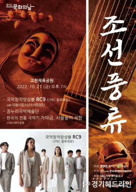 [경기헤드라인=문수철 기자] 의왕시는 21일 저녁 7시 고천체육공원에서 (사)한국국악협회 의왕시지부 주관으로 ‘조선풍류’공연을 개최한다고 밝혔다.