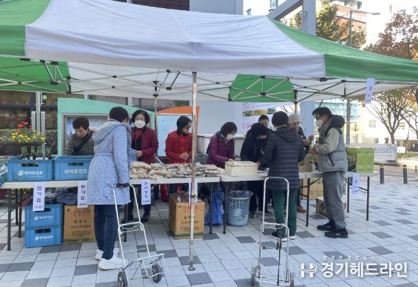 [경기헤드라인=문수철 기자] 의왕시 내손1동 새마을부녀회(회장 김옥자)는 지난 19일 주민센터 앞마당에서 생산자 직거래 장터를 개최했다.