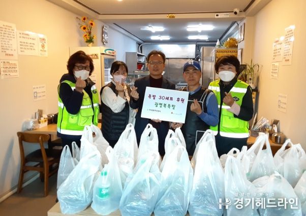 [경기헤드라인=문수철 기자] 의왕시 부곡동에 위치한 ‘광명복족발’에서 독거 어르신들의 건강을 위해 19일 부곡동주민센터에 족발 30세트를 기탁했다.