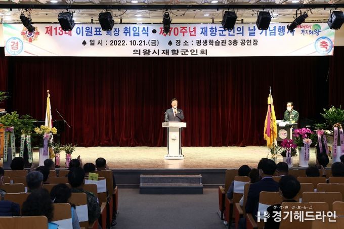 [경기헤드라인=문수철 기자] 의왕시 재향군인회(회장 이원표)는 지난 21일 의왕시 평생학습관에서 ‘제70주년 재향군인의 날 행사 및 제13대 의왕시 재향군인회장 취임식’을 개최했다고 밝혔다.