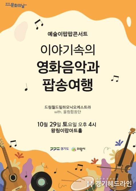 [경기헤드라인=문수철 기자] 의왕시는 2022년 경기도 문화의 날 문화예술 프로그램 지원사업의 일환으로 ‘이야기 속의 영화음악과 팝송 여행’ 공연을 오는 29일(금) 오후 4시 왕림이팝아트홀에서 개최한다.