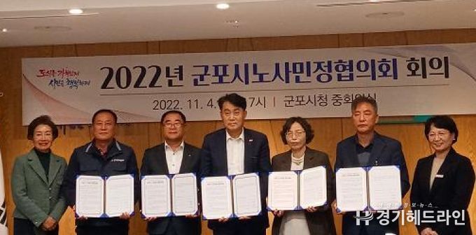 [경기헤드라인=문수철 기자] 군포시는 4일 시청 중회의실에서 노사민정협의회 회의를 개최하고 ‘좋은 일자리 창출과 지역경제 활성화를 위한 군포시 노사민정 공동선언’을 발표했다.