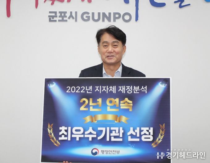 [경기헤드라인=문수철 기자] 군포시는 행정안전부가 실시한 2022년 지방자치단체 재정분석 평가결과 ‘최우수’ 단체로 선정됐다고 밝혔다