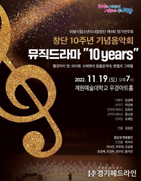 [경기헤드라인=문수철 기자] 의왕시립소년소녀합창단이 오는 19일 계원예술대학교 우경아트홀에서 제9회 정기연주회 뮤직드라마 ‘10years’를 개최한다.