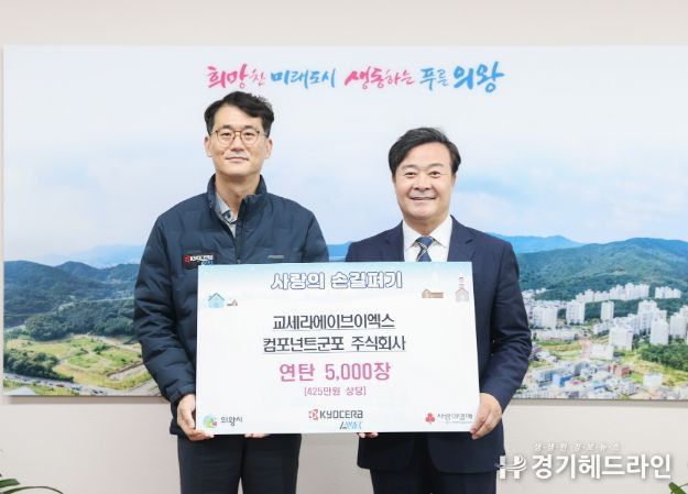 [경기헤드라인=문수철 기자] 의왕시는 교세라에이브이엑스 컴포넌트군포(주)에서 연탄 5,000장을 기부했다고 17일 밝혔다.
