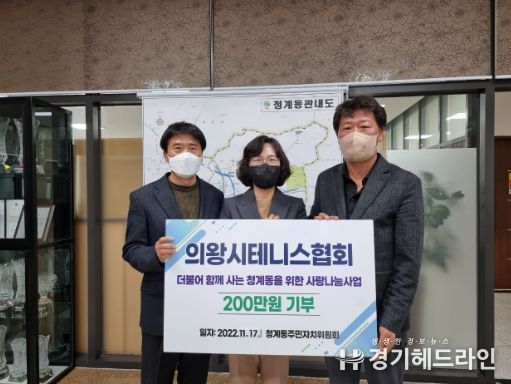 [경기헤드라인=문수철 기자] 의왕시테니스협회는 17일 지역사랑나눔성금 200만원을 청계동 주민자치위원회에 기탁했다.