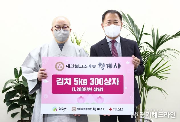 [경기헤드라인=문수철 기자] 의왕시는 24일 대한불교조계종 청계사에서 김장김치 5kg 300상자(1,200만원 상당)를 기부했다고 밝혔다.