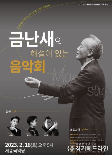2023년 여주세종문화관광재단 기획공연 – 마에스트로 시리즈의 첫 번째 무대인 ‘금난새의 해설이 있는 음악회’는 클래식의 대중화에 앞장선 거장, 지휘자 금난새가 세종국악당이 건립된 이래, 처음으로 여주시민들을 만나는 자리이다.