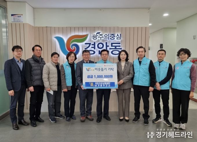 [경기헤드라인=정현수 기자] 국민건강보험공단 경기광주지사는 지난 21일 광주시 경안동 행정복지센터를 방문해 이웃돕기 성금 100만원을 전달했다.
