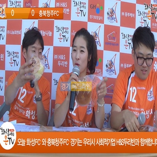 화성FC 서포터즈와 축구해설을 하며 화성시민들에게 회사 홍보