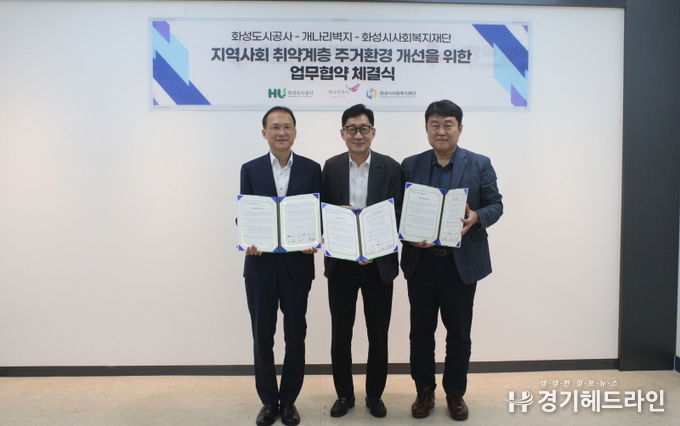 지난 7일 화성도시공사와 개나리벽지(주), 재) 화성시사회복지재단이 상호신뢰를 바탕으로 사회공헌 협력체계를 구축하여 ESG기반 지역사회공헌활동을 하겠다는 업무협약을 체결했다. 화성도시공사 설립 이후 단체가 아닌 기업과 복지재단, 3자가 맺은 사회공헌사업은 최초 격이라 그 의미가 남다르다.