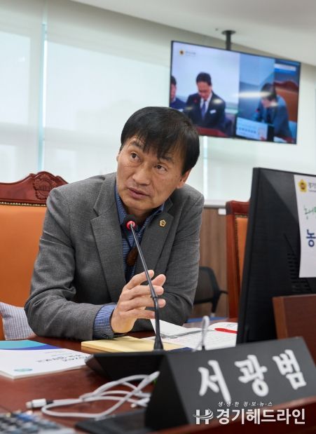 [경기헤드라인=문수철 기자] 경기도의회 농정해양위원회 서광범(국민의힘, 여주1) 의원이 22일, 2024년 축산동물복지국과 농업기술원의 업무보고를 받고 하천부지 조사료 재배 허용과 여주 반려마루 운영에 지역주민 참여방안 등을 주문했다.