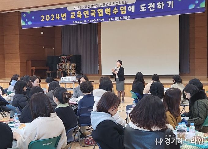 [경기헤드라인=문수철 기자] 경기도성남교육지원청은 2월 26일 탄천초등학교에서 교육연극 협력수업 사전워크숍을 개최했다. 이 행사는 관내 교원들과 성남문화재단 관계자 등 100여명이 참석하여 교사와 예술 강사 간의 팀티칭으로 진행하는 교육연극 협력수업을 이해하고 내실있는 운영의 기반을 마련하는 뜻깊은 자리로 마련됐다.
