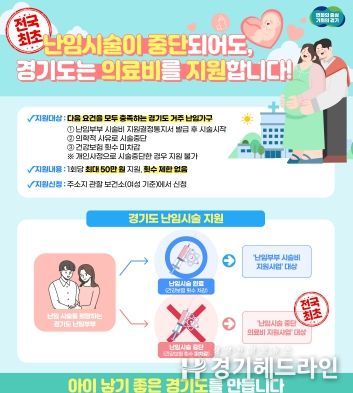 또한 5월부터는 난임 시술이 중단된 경우에도 의료비를 지원하는 '난임 시술 중단의료비 지원사업'을 시행한다. 지원 대상은 ‘난임부부 시술비 지원결정통지서’를 교부받아 시술 중 공난포․조기배란 등 불가피한 의학적 사유로 시술이 중단된 경우가 해당되며, 회당 50만 원의 의료비를 횟수 제한 없이 받을 수 있다.