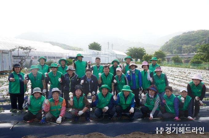 [경기헤드라인=김윤종 기자] 강수현 양주시장이 지난 12일 장흥면 삼상리 소재 유휴농지에서 새마을지도자장흥면협의회 및 새마을부녀회가 이웃돕기 기금을 마련하기 위해 주관한 ‘고구마 심기 행사’ 현장에 방문하고 손을 보탰다.