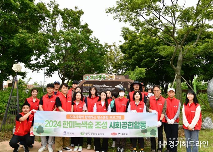 [경기헤드라인=문수철 기자] 평택시와 한미약품은 지난 25일에 통복천 꼬리명주나비숲에서 생태정원 나무 심기 행사를 진행했다.