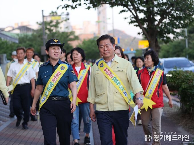 이날 박승원 시장을 비롯한 100여 명의 순찰단은 소하지구대를 시작으로 소하 휴먼시아 6단지, 소하도서관을 지나며 인근 주거지역의 치안을 살폈다. 이어 야간시간대 시민 왕래가 많은 이마트 광명소하점 인근, 소하 상업지구, 한내 근린공원을 순찰하며 CCTV, 로고젝터, 보안등 등 범죄 예방 시설물도 함께 점검했다.