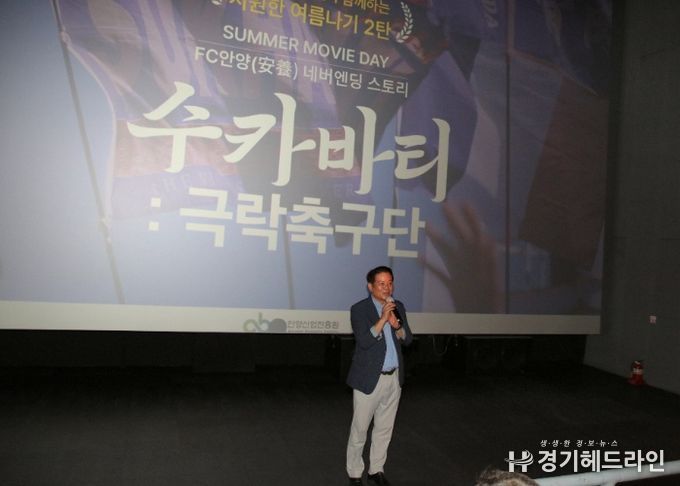 FC안양 구단주이기도 한 최 시장은 이날 극장을 찾아 “연고 축구단과의 이별을 통해 소중함을 느끼고 해후하는 모습을 담은, 축구 영화가 아닌 ‘사랑’ 영화라고 느껴지기도 한다”며 “축구를 통해 안양의 역사를 더 이해하고 자긍심을 가질 수 있는 시간이 되시길 바란다”고 말했다.