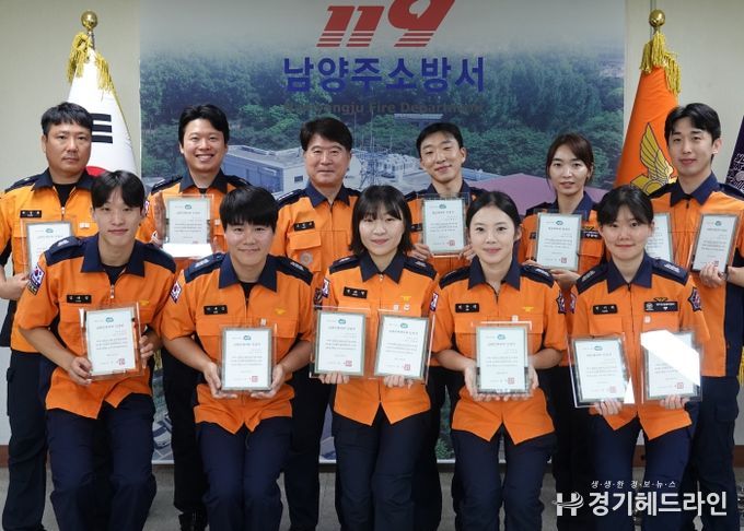 [경기헤드라인=문수철 기자] 남양주소방서는 7일, 이번 상반기 동안 소중한 생명을 살린 20명의 소방관들을 대상으로 중증환자 세이버 인증서 수여식을 가졌다.