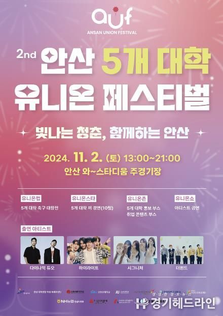 [경기헤드라인=문수철 기자] 안산시는 오는 11월 2일 와~스타디움에서 안산 5개 대학 연합축제인 제2회 안산 유니온 페스티벌을 개최한다고 28일 밝혔다.