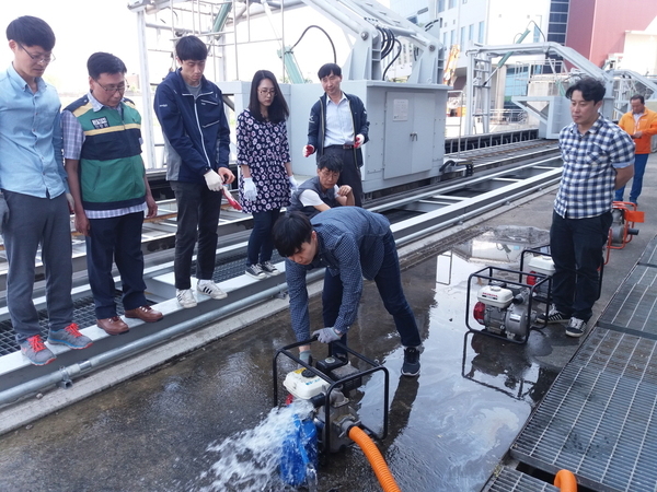 이번 교육은 여름철 자연재해대책기간(매년 5.15~10.15) 중 지역주민들과 가장 가까운 곳에서 민원을 처리하고 있는 동 주민센터 현장민원 담당자들의 양수기, 수중펌프 등 수방장비 작동 교육과 효율적 유지관리 방법 등에 대한 체험 교육 위주로 진행됐다.