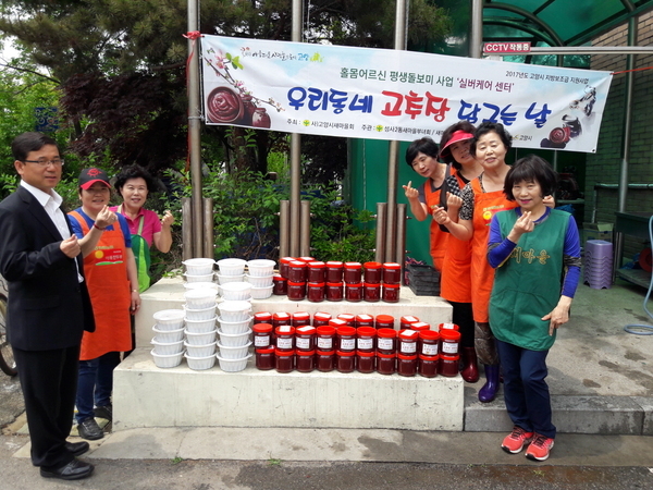 이날 행사에는 새마을부녀회 등 각 직능단체 10여 명이 참여해 한마음으로 정성을 들여 고추장과 불고기를 만들며, 각 단지 경로당, 홀몸어르신과 장애인 가정 등 저소득층 60가정에 전달하며 이웃 간의 훈훈한 정을 나누기도 했다.
