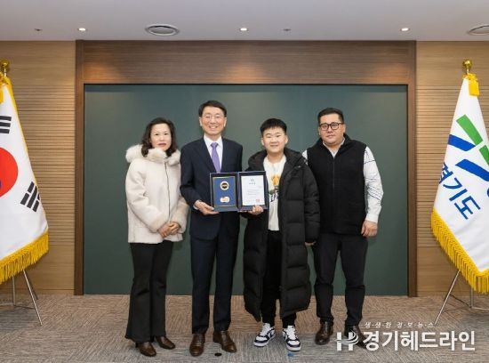 김성중 경기도 행정1부지사는 지난 19일 수원에 있는 파장초등학교에 재학 중인 전시윤(12세)군을 초청해 경기도지사 표창을 수여하고 격려했다.