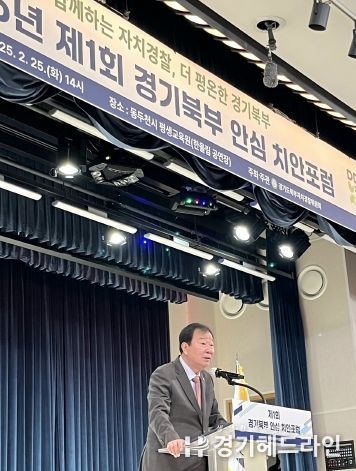 [경기헤드라인=문수철 기자] 경기도의회 안전행정위원회 임상오 위원장(국민의힘, 동두천2)은 25일 동두천시 평생교육원 한울림 공연장에서 개최된 ‘2025년 제1회 경기북부 안심 치안포럼’에 참석해 축사를 전했다.