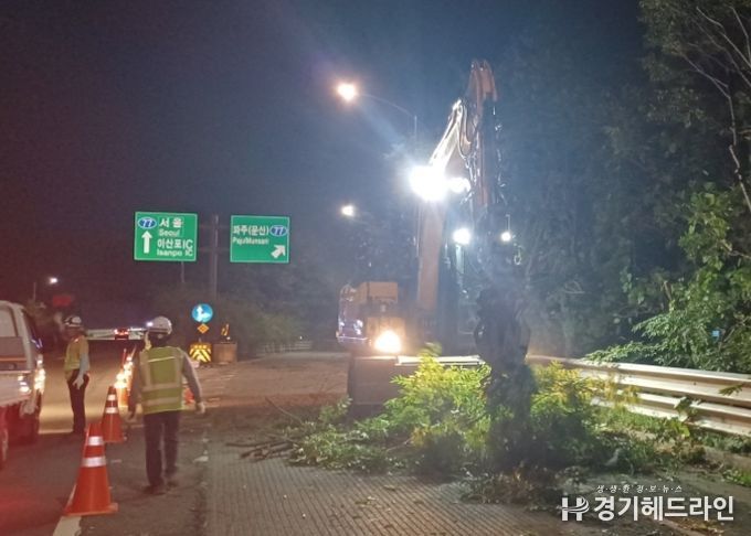 이번 작업은 차량 통행이 비교적 적은 밤 10시부터 새벽 5시까지 진행됐으며, 자유로 장월IC 인근 파주 방향 구간을 대상으로 했다. 도로 쪽으로 길게 뻗은 가로수와 잡목은 물론 칡덩굴까지 제거해 노면 청소차량 진입을 용이하게 하고, 운전자들에게는 안전하고 쾌적한 도로 환경을 제공했다.